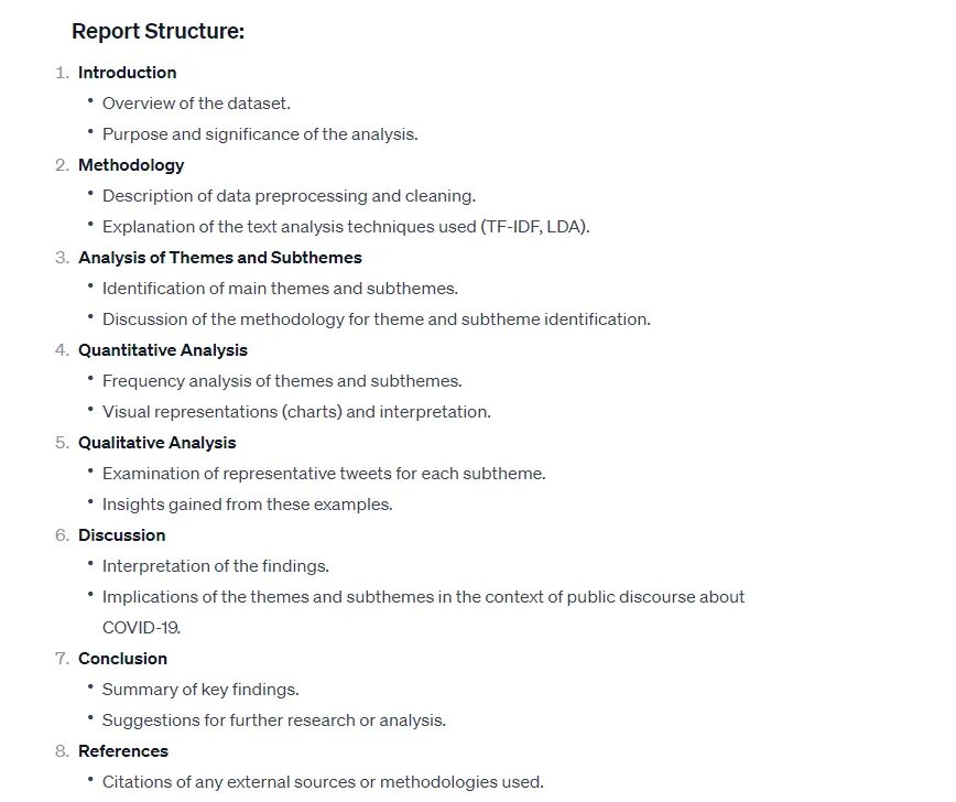 But does ChatGPT have the ability to make inferences? To find out, after all these analyses, we ask it to prepare a 2000-word report written as it sees fit. ChatGPT produces a result that surprises us here. It produces an analysis report with a serious structure rather than a report like a simple blog post. But first it gives us detailed information about the structure of the report.You can download and review the PDF of the first analyze report with 2000 words by ChatGPT from this link.