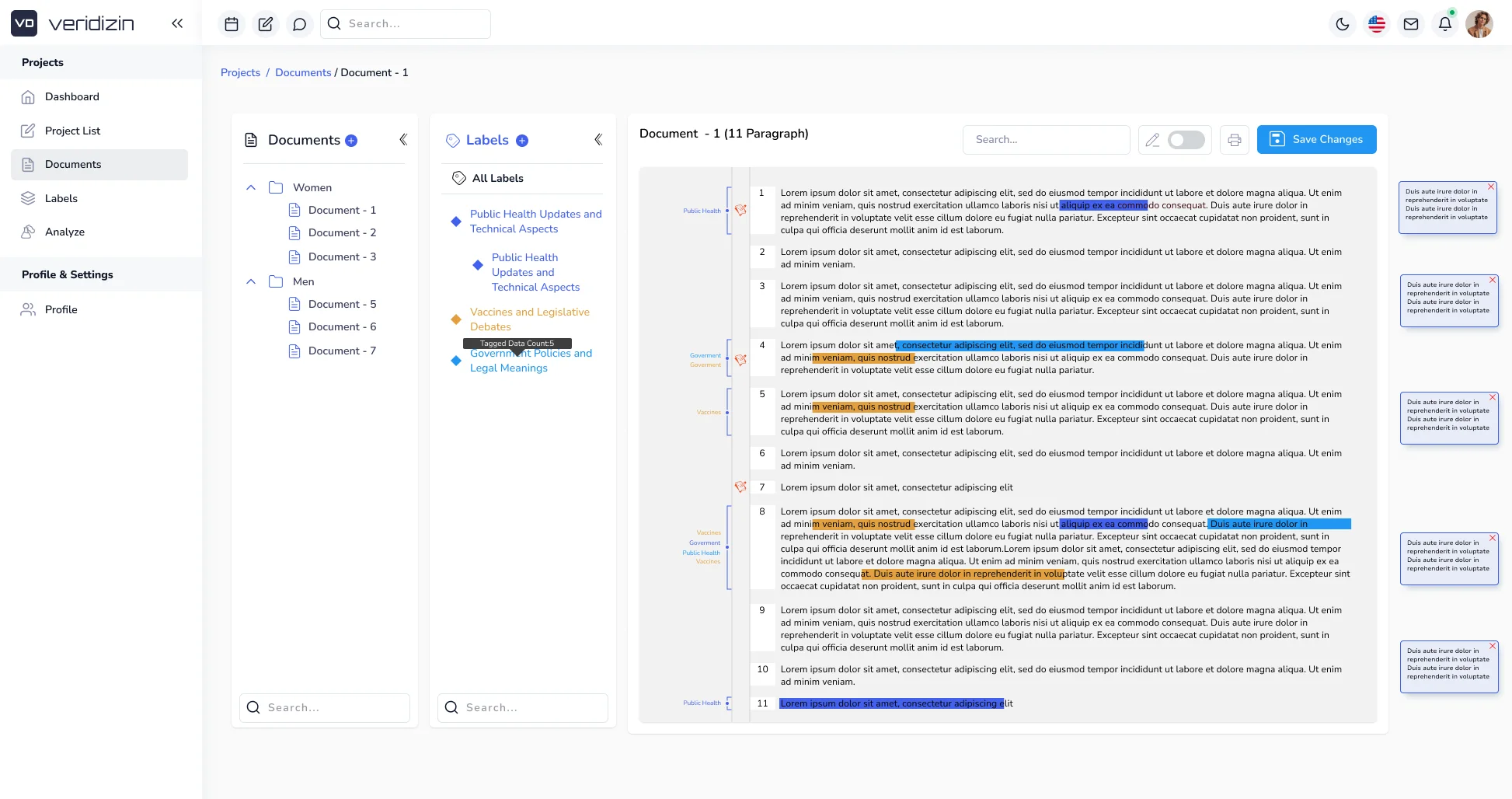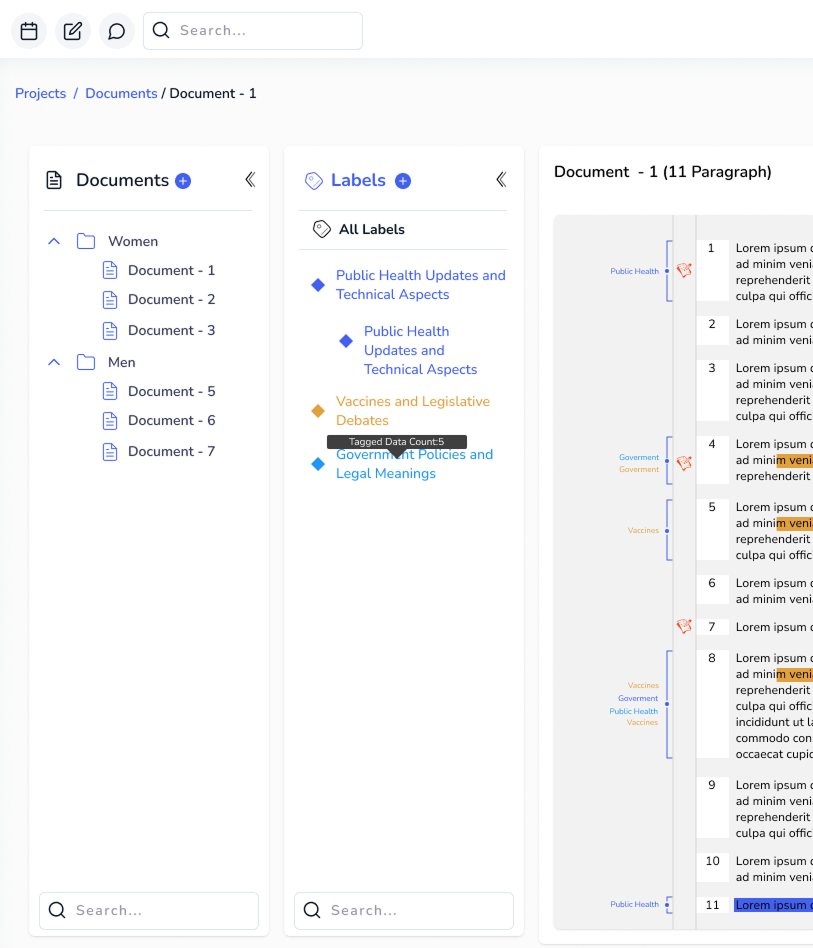 Access your documents, folders, and color‑coded labels from anywhere in the workspace. Expand nested structures, hide the panel when you need focus, and navigate complex projects with a clean, always‑available organizational system.
