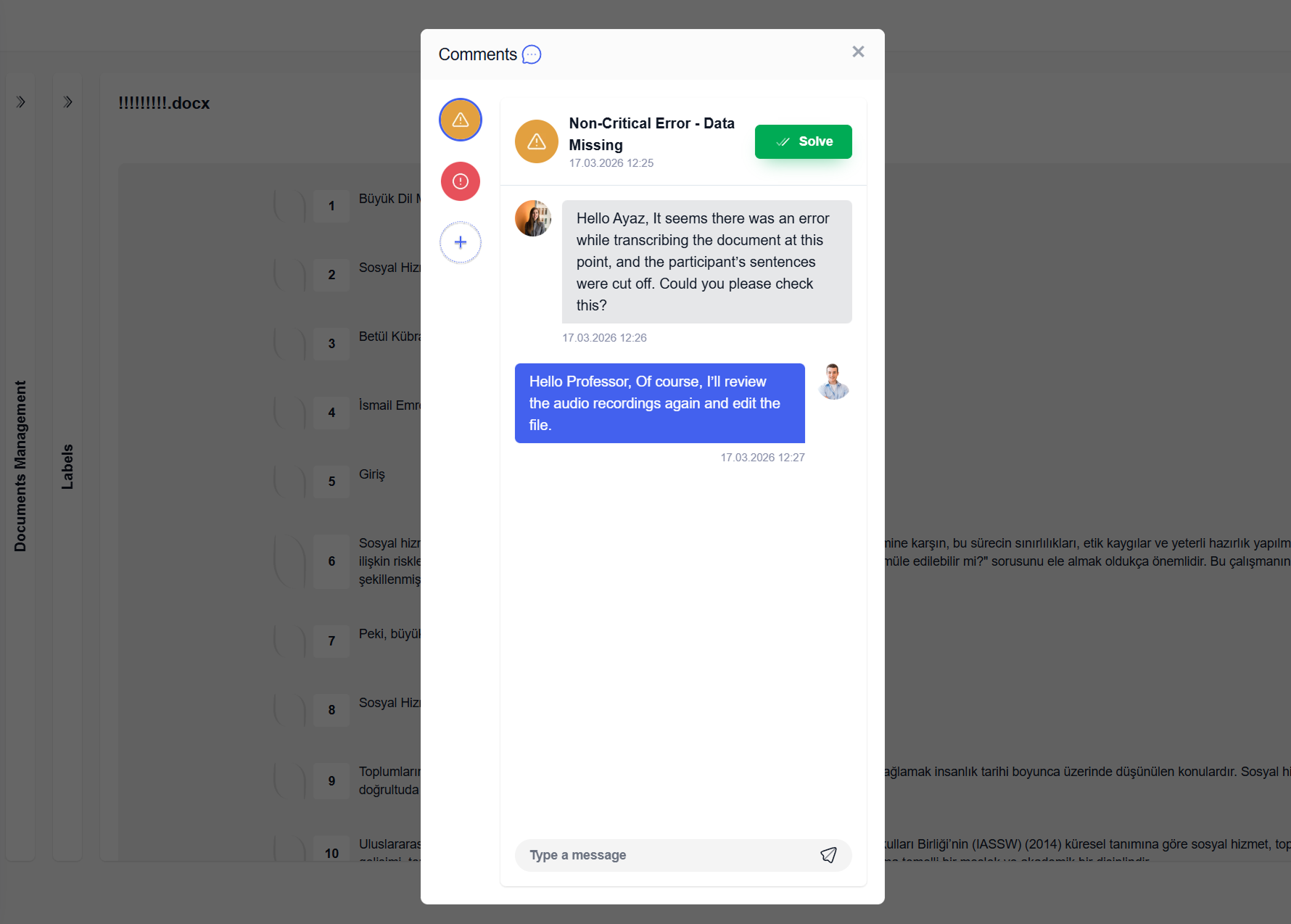 Start comments or real‑time chats on any line of any document, keep discussions tied to the exact analytic context, and close resolved threads with a single click — enabling clear, structured, and interruption‑free collaboration throughout your research.